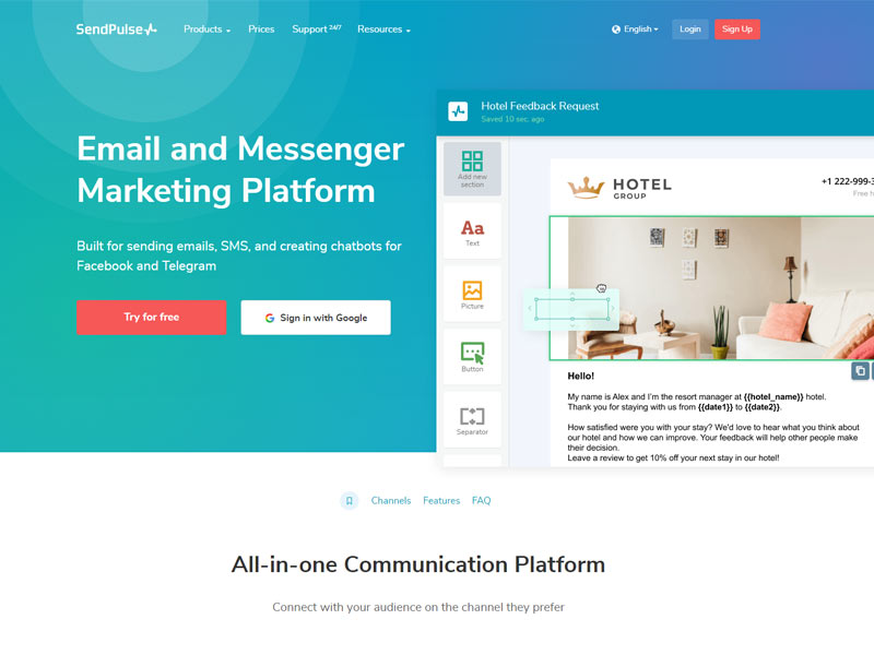 Es ist ein All-in-One-Kommunikationskanal, mit dem du deine Kunden durch Web-Push-, Messenger-, SMS- und E-Mail-Kampagnen bei der Stange halten kannst. Das beste E-Mail-Marketing-Tool bietet eine Suite zum Erstellen von responsiven Vorlagen, Kontaktinformationen und automatisierten Abläufen.