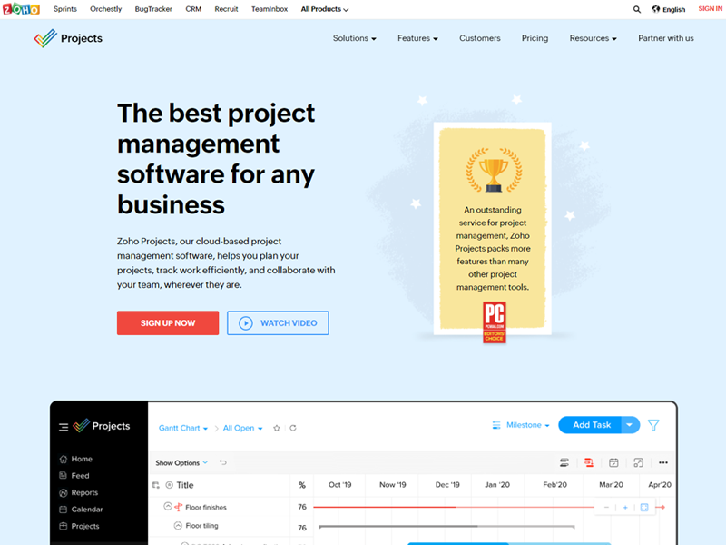 Zoho Projects ist ein unkompliziertes visuelles Projektmanagement, das Hunderte von Funktionen innerhalb einer einzigen Plattform bietet. Sie ist für viele Unternehmen verfügbar. Mit Zoho Projects kannst du deine Aufgaben effizient verwalten und das Projekt pünktlich abschließen.