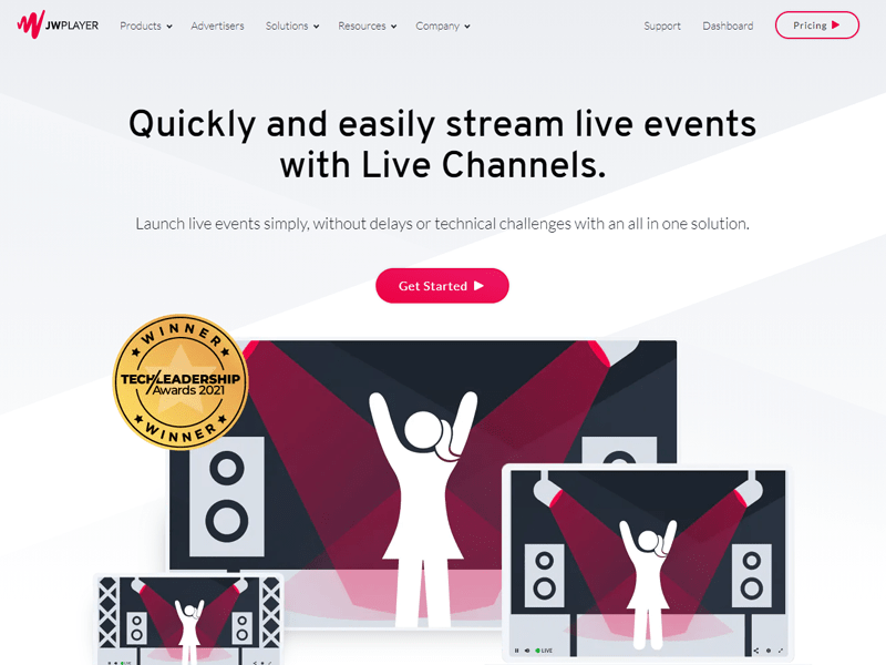 Der JW-Player macht es dir leicht, dein Publikum zu erreichen und neue Apps im Fernsehen und auf dem Handy zu starten. Er bietet skalierbare Lösungen, um Videos zu monetarisieren und zu veröffentlichen. Außerdem gibt es bestimmte Optionen für die Anzeigenunterstützung, um die Cost per Mile (CPM) über alle Plattformen und Bildschirme hinweg optimal auszunutzen.