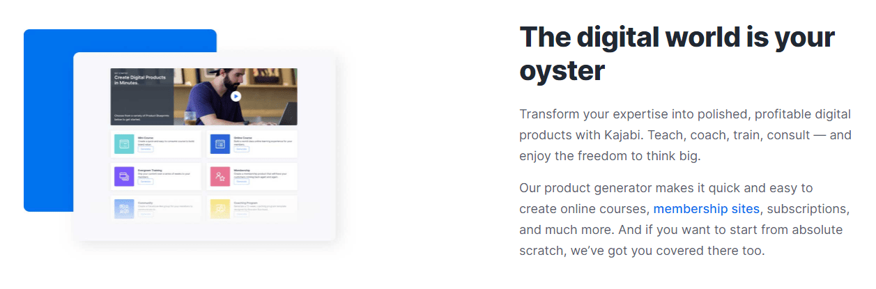 Kajabi ermöglicht es den Nutzern außerdem, maßgeschneiderte Kurse für den Online-Verkauf zu erstellen, und die Plattform ist eher mit Thinkific und Teachable (Plattformen für den Online-Kursverkauf) verwandt.
