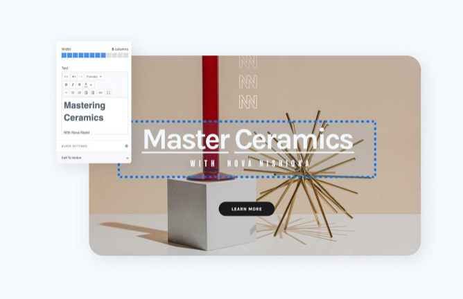 Der in Kajabi integrierte visuelle Page Builder bietet verschiedene Elemente, mit denen du deiner Website mehr Funktionalität verleihen kannst, z. B. Countdown-Timer, Akkordeons, Videos, CTAs, Formulare und vieles mehr.