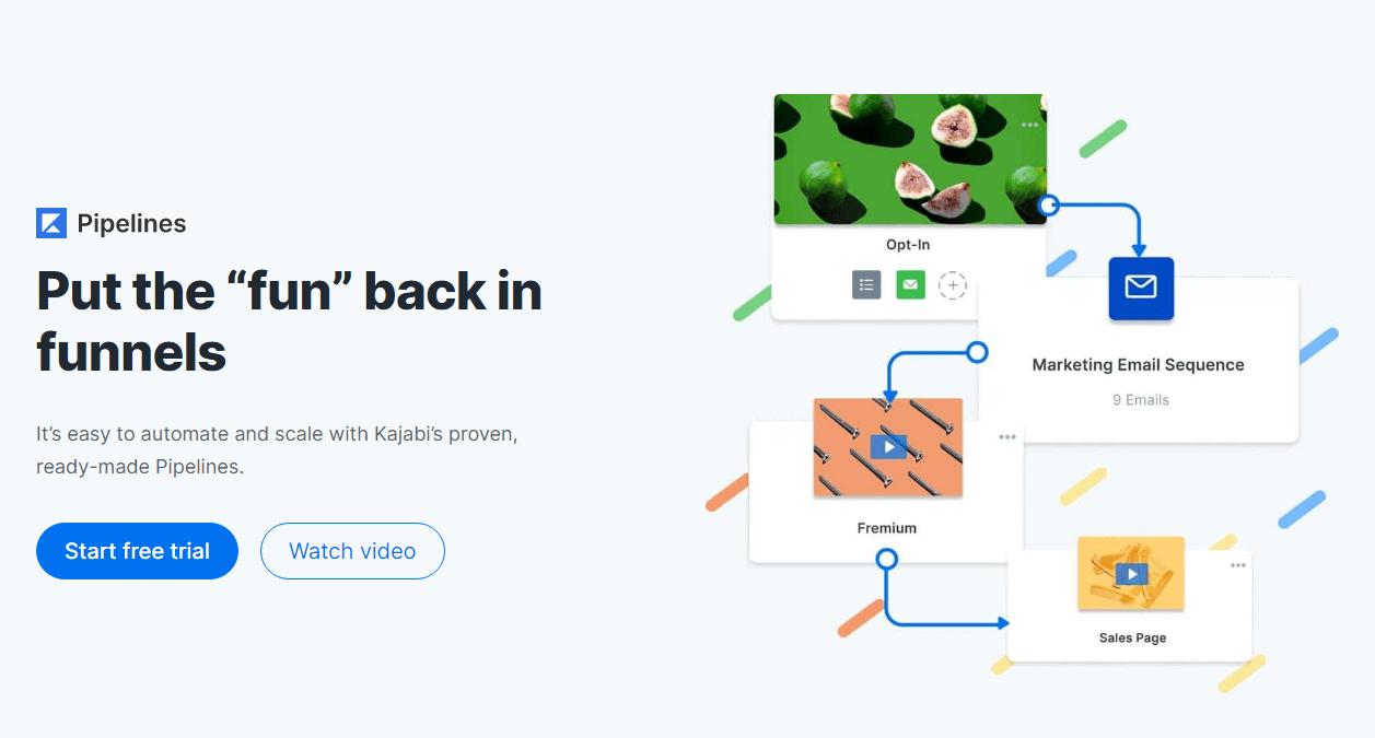- Beide Plattformen wurden entwickelt, um das Marketing zu erleichtern, indem sie es den Nutzern ermöglichen, Verkaufstrichter zu erstellen. Bei Kartra wird der Aufbau von Verkaufstrichtern als „Kampagnen“ bezeichnet. Bei Kajabi hingegen werden sie „Pipeline“ genannt. Ich glaube jedoch, dass der Prozess der Trichtererstellung bei Kartra ausgereifter, klarer und schlanker ist als bei Kajabi.